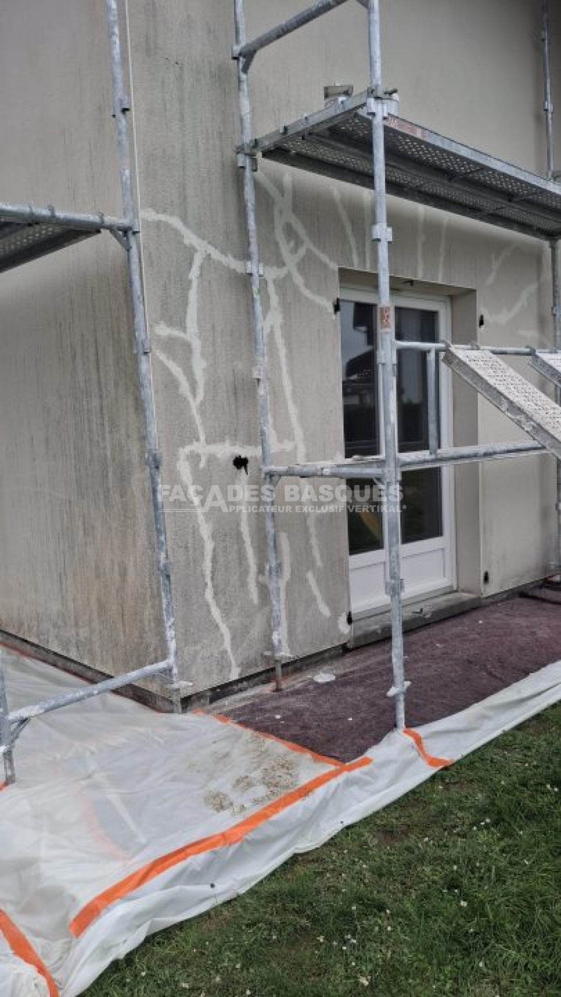 Ce chantier de rénovation de façade était aussi l’occasion de moderniser l’esthétique de la maison. Le client souhaitait changer la couleur de son enduit hydraulique blanc cassé par une teinte plus lumineuse comme le blanc. Grâce à notre expertise en ravalement de façades de maisons individuelles au Pays basque, nous avons appliqué une finition adaptée, alliant protection et mise en valeur durable des façades.