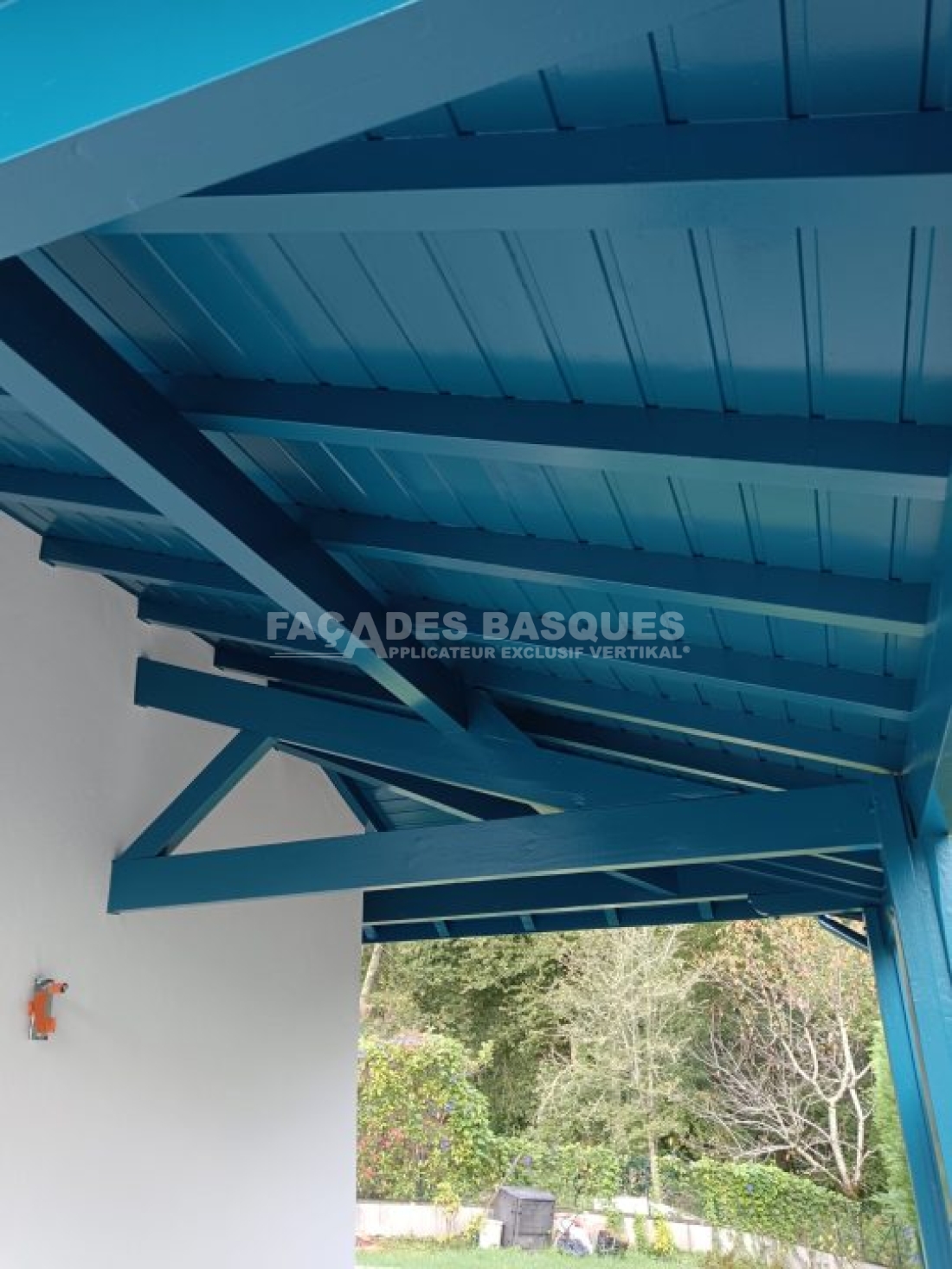 Nous avions également en charge d’effectuer la remise en peinture des différentes boiseries présentes, comme les dessous de toits, bandeaux, terrasses couvertes, colombages, porte.
