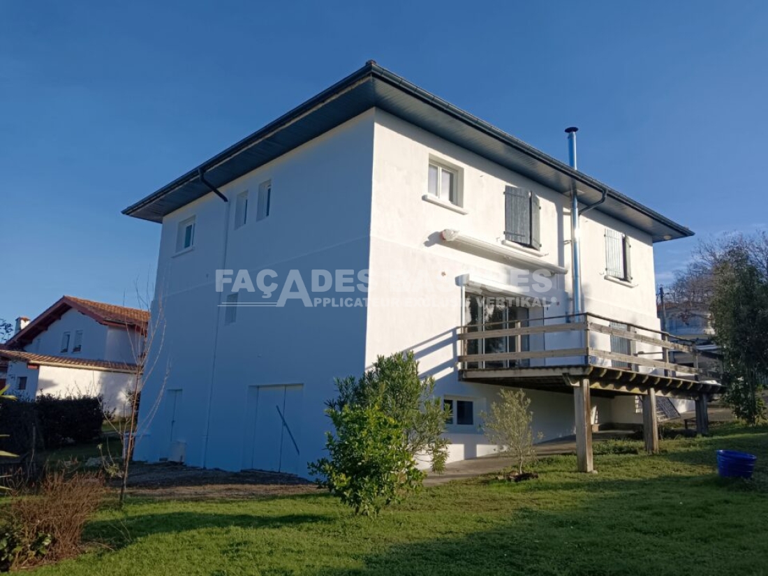 Grâce à la large gamme de produits VERTIKAL®, que nous utilisons exclusivement pour faire nos travaux de ravalement, rénovation de façades au pays basque, nous avons la possibilité de mettre en œuvre la meilleure solution de finition façade par façade, ce qui est le cas ici, sur cette maison de Mouguerre.