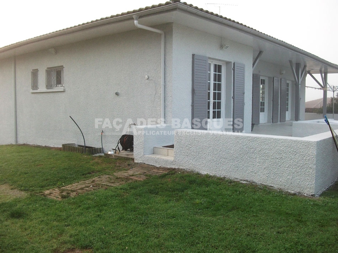 L’ancien support était un enduit hydraulique monocouche teinté dans la masse (E.H.M.T.M, autrement appelé crépi) d’un projeté à gros grain. Celui-ci était encrassé par la pollution (axe routier très passant) mais aussi par l’air salin sur la façade Ouest (habitation proche front de mer) qui est venu « coller » les poussières dans les concavités de l’enduit, ce qui a engendrer des moisissures. Sans oublier que ce même enduit friable étant devenu un véritable buvard, cela augmentait les risques d’humidité de plus en plus grandissant.
