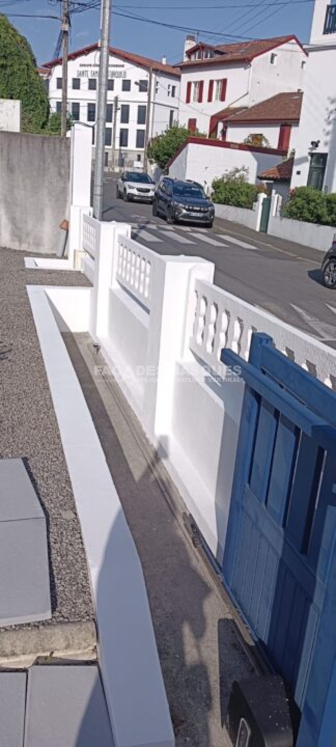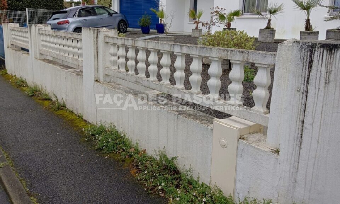Notre client de Saint de Luz 64500 est un ancien client. En effet, en 2022 il nous avait contacté et nous avait confié le ravalement de la façade NORD de sa maison (lien avis client Eldo) et c’est tout naturellement qu’il nous a recontacté et nous a parlé de ce muret périphérique situé devant sa maison le long de la rue. Nous avons constaté un fort encrassement (pollution à cause du passage de véhicules juste devant, moisissures) https://www.eldo.com/pro/facades_basques_applicateur_exclusif_vertikal_r/?page=4#reviews